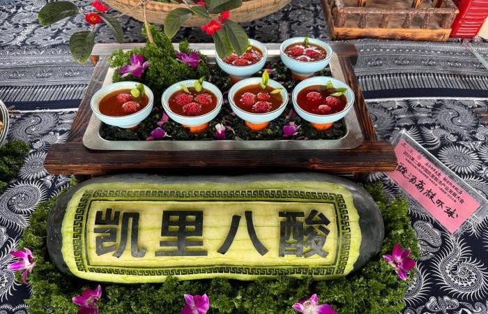 千年前,苗族先民在缺盐的困境中,以米汤发酵创制了白酸汤,开创了“以酸代盐”的饮食智慧。历经岁月沉淀,衍生出凯里红酸汤、酸汤鱼、酸汤牛肉、酸汤方便粉等系列佳肴,深深融入凯里民众的日常生活。“三天不吃酸,走路打蹿蹿”的俗语,既是凯里民众饮食偏好的真实写照,也形象道出了八方食客对“凯里酸汤”的深深眷恋。