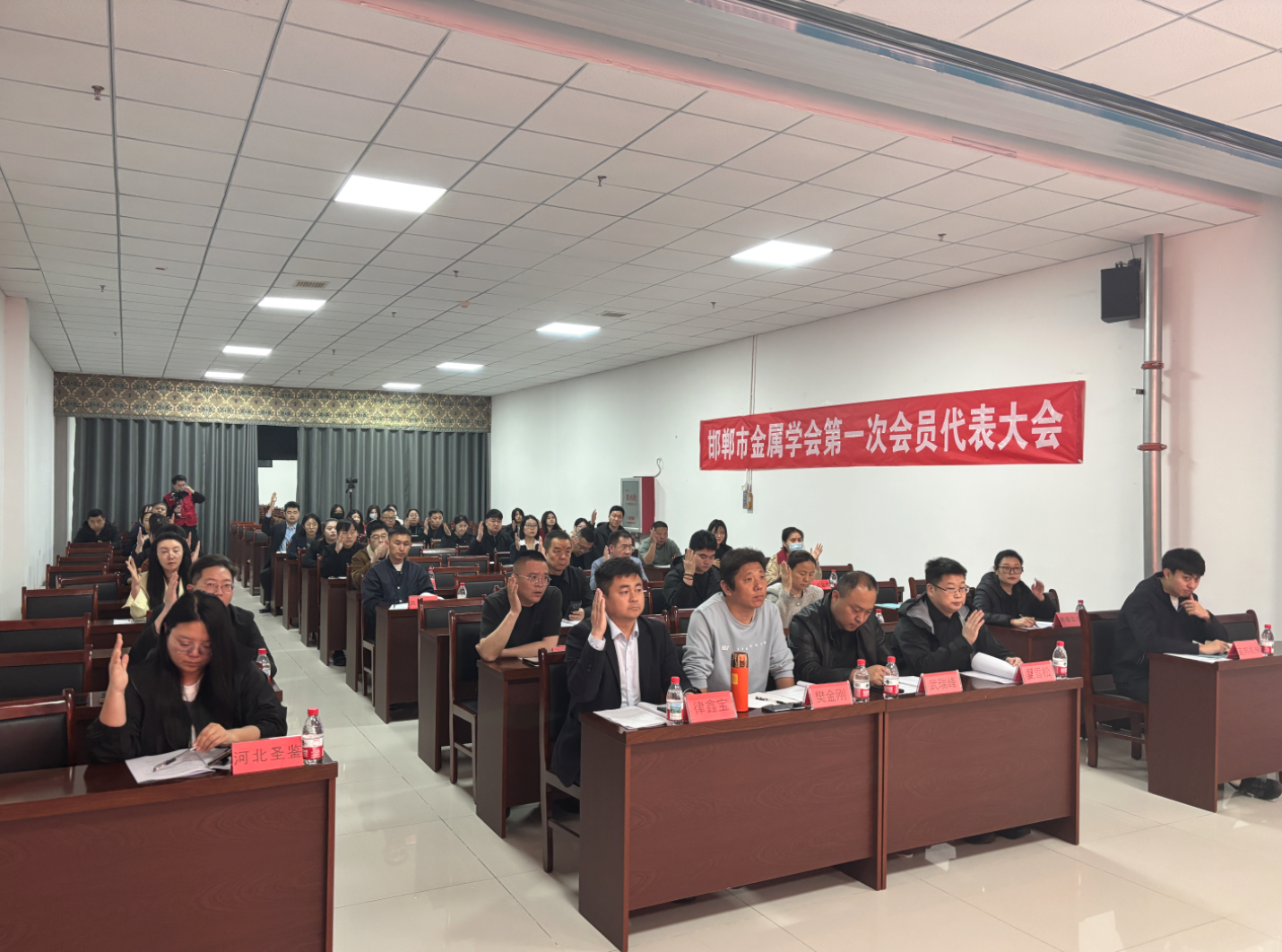 会议现场审议并表决通过了《邯郸市金属学会章程(草案)》《邯郸市金属学会第一次会员大会选举办法(草案)》,选举产生了邯郸市金属学会第一届理事会理事及学会第一届负责人,河北现雷科技集团有限公司总经理周现雷当选邯郸市金属学会第一届理事会会长。