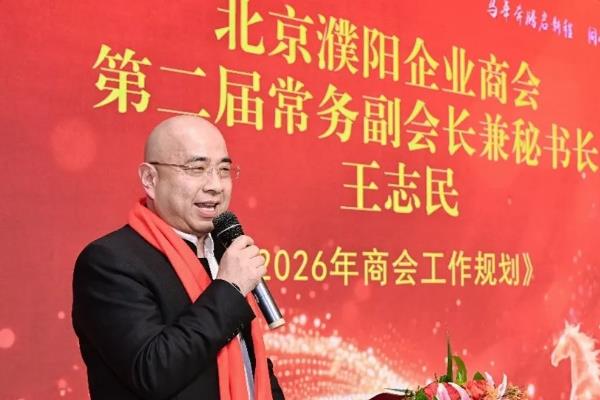 北京濮阳企业商会常务副会长兼秘书长 王志民做了《2026年商会工作规划》,首先非常感谢第二届商会理事会的信任认可,给予我再次担任秘书长的机会,也特别感谢第一届理事会在陆民会长的带领下,为商会做出的基础和贡献,也非常欣慰在第一届理事会中工作中受到的学习锻炼和发展机会,我不辜负第二届理事会的信任,带领秘书处努力把第二届工作做好,扩的第二届会员数量增长,让每一位商会会员在商会平台都获得收获。