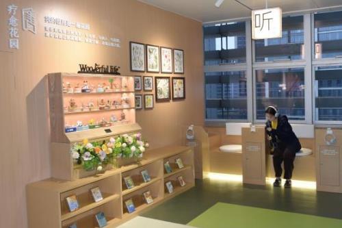 除荐书、听书,读者还可将情绪以文字、绘画方式记录下来,投入“情绪收集器”;也可将耳朵贴近墙壁上的喇叭,聆听植物生长、溪水流动等自然万物的声音;还能躺进“阿尔法波椅”,在特定频率音乐的轻柔按摩中,放松身心、释放压力。
