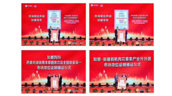 在会上,尚普咨询向知岐健康集团管庆磊董事长正式颁发了“知岐健康—中国药食同源菊苣产业领导品牌”、“知岐健康—药食同源菊苣产品全国销量第一”、“知鹿妈妈—药食同源肠胃本草固体饮品全国销量第一”、“知蓉—新疆有机肉苁蓉茶产业开创者”市场地位声明书。