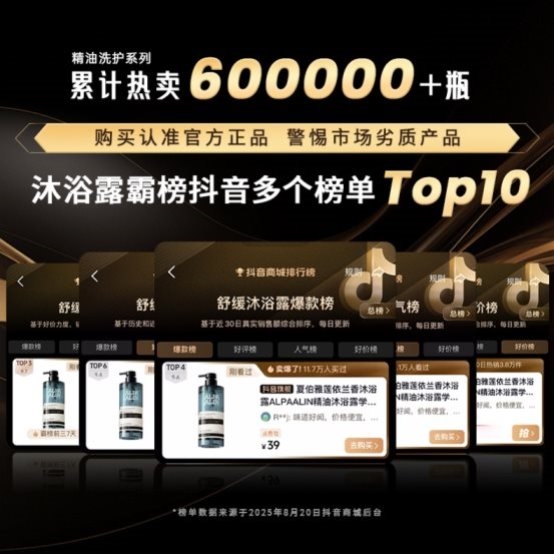 据统计,依兰花精油洗护累计销量60万+瓶,已跻身抖音洗发水沐浴露多个 榜单的TOP10。