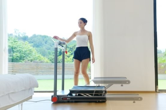 爱动派的这款跑步机则是一款颠覆传统的“居家有氧神器”。它采用双跑板设计,支持一键自动收纳,折叠后占地极小,美观且适配各种家居场景。创新搭载可调坡度功能,采用碳纤维跑板,硬度高、不易变形、弹性优于木板,且重量更轻。跑带采用软性材质,不怕折叠且弹性出色,还配备跑带刷设计,可自动清理脏污。同时拥有多项专利加持,涵盖跑板收纳、跑带收纳、跑带刷及跑板坡度调节等领域。无论是日常跑步还是坡度训练,都能满足需求,让居家有氧健身既便捷又专业,彻底解决传统跑步机占地大、功能单一的痛点。