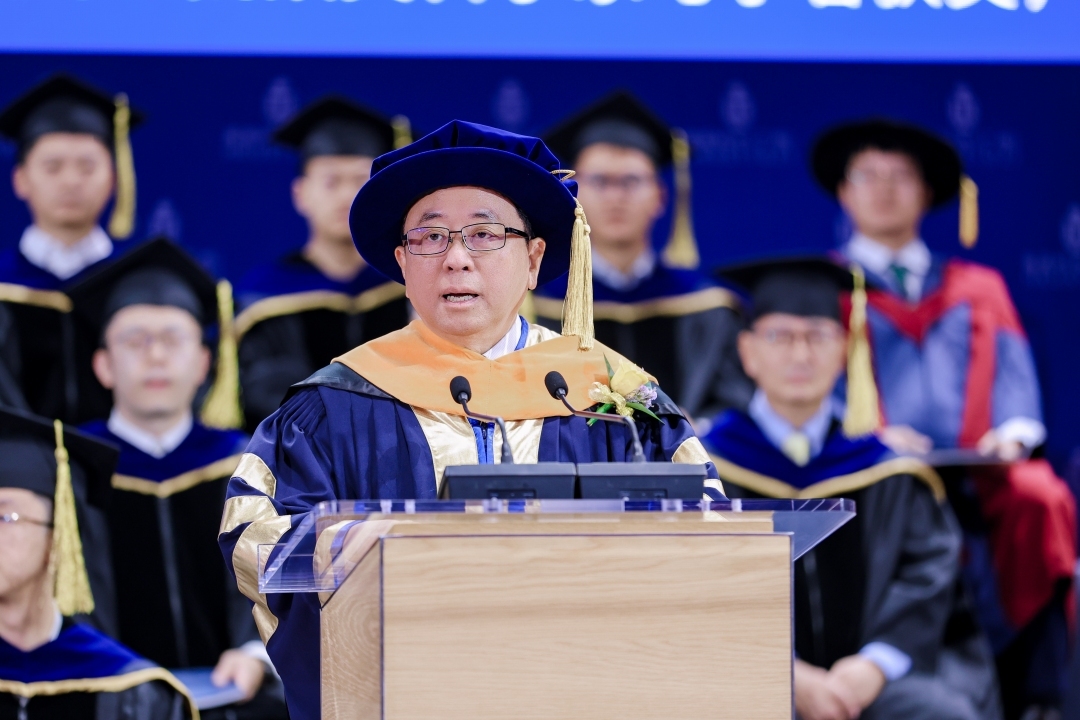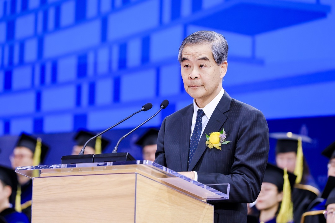 毕业典礼上,全国政协副主席梁振英,香港科技大学(广州)理事会理事长、香港科技大学校长叶玉如,香港科技大学(广州)校长倪明选等分别作了主题演讲或致辞。