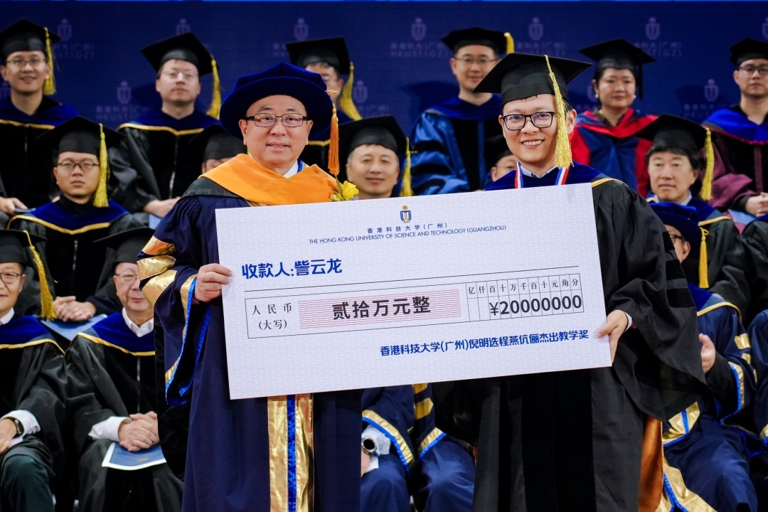 在毕业典礼上,港科大(广州)颁发了首届“香港科技大学(广州)倪明选程燕伉俪杰出教学奖”。