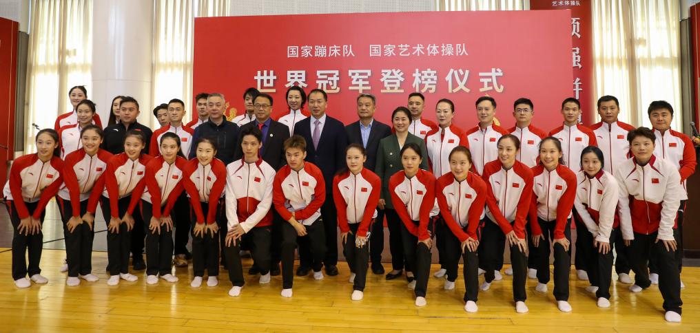 国际网(www.guoji.net.cn)讯:12月22日,中国蹦床队、艺术体操队世界冠军登榜仪式在北京体育大学国家队训练基地举行。蹦床队八名、艺术体操队两名新世界冠军登上荣誉榜。
