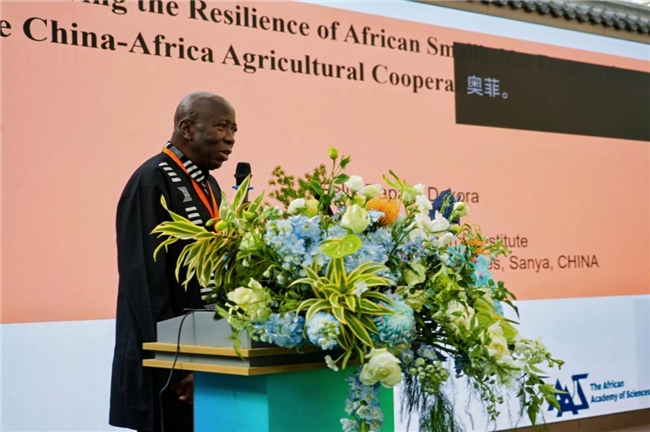 主旨分享环节,嘉宾们各抒己见。中国工程院外籍院士 菲利克斯·达科拉(Felix Dakora) 围绕“中非农业合作提升非洲小农韧性”,剖析非洲农业面临的技术、基础设施及气候挑战,提出中非农业项目联合运营等解决方案;国际农业研究磋商组织(CGIAR)中国办公室主任贡锡锋介绍了CGIAR的资源优势与合作成果,强调多边农业科技组织在全球创新资源链接、标准互认等方面的核心作用;丝绸之路城市联盟"一带一路"农专委创始人、农业农村部国际合作司原副司长赵维宁指出,农业国际合作是中国农业高质量发展的“加速器”,也是沿线国家筑牢粮食安全防线的“金钥匙”;“一带一路”农专委运营中心负责人、江苏天禾温室科技有限公司董事长赵健详解了运营中心的定位与未来规划。