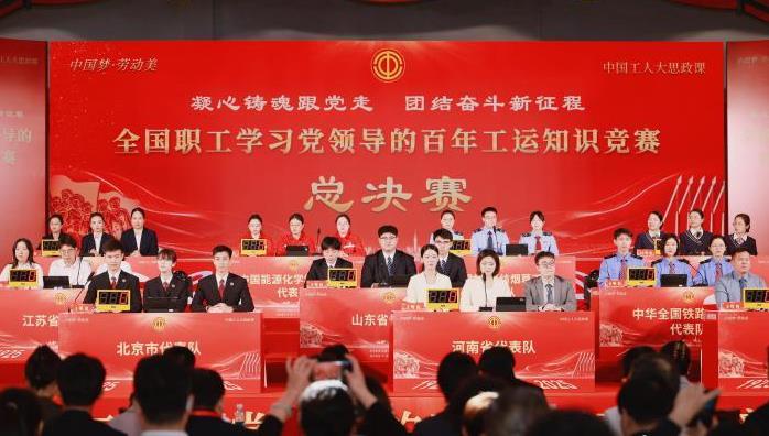 据介绍,赛事自2025年6月启动以来,线上答题累计达1658.5万人次。39支代表队晋级决赛,最终10支队伍脱颖而出、会师总决赛。经过激烈角逐,山东省总工会代表队获得金奖,中国能源化学地质工会、北京市总工会、河南省总工会代表队获得银奖,中华全国铁路总工会、山西省总工会、中国财贸轻纺烟草工会、广东省总工会、安徽省总工会、江苏省总工会代表队获得铜奖。