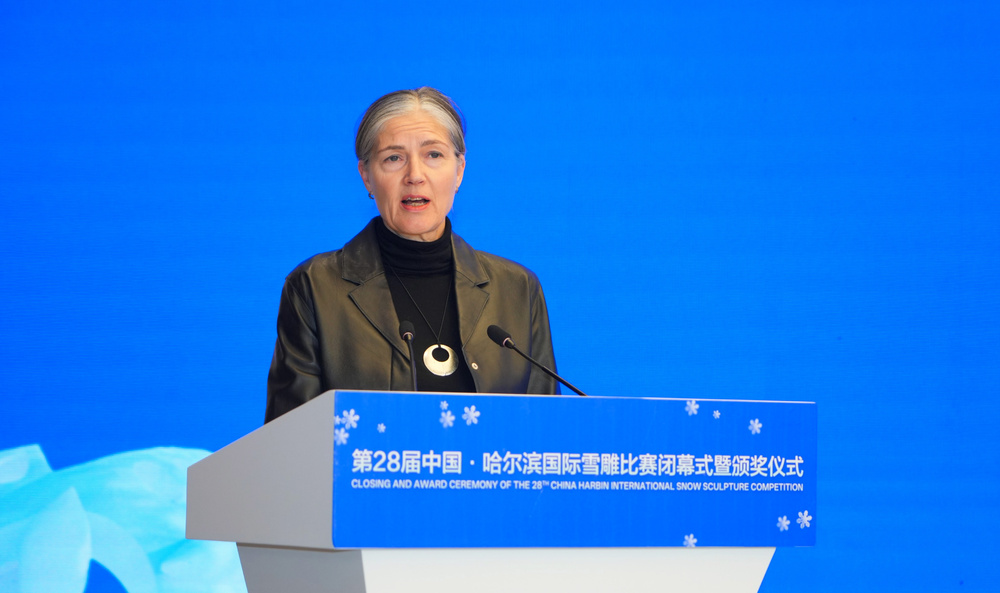 赛事评委会主席、世界冰雪雕艺术协会执行主席海科宁女士的点评,满是对参赛作品的认可与赞叹。“哈尔滨太阳岛的雪质与创作环境堪称世界顶级,本届参赛作品在创意构思、技艺难度与艺术表现力上都达到了极高水平,充分展现了全球冰雪艺术的多元融合与蓬勃生机。作为中国雪雕艺术的发源地,哈尔滨自1989年举办首届雪雕比赛以来,早已成为全球冰雪艺术家心之向往的交流平台”。