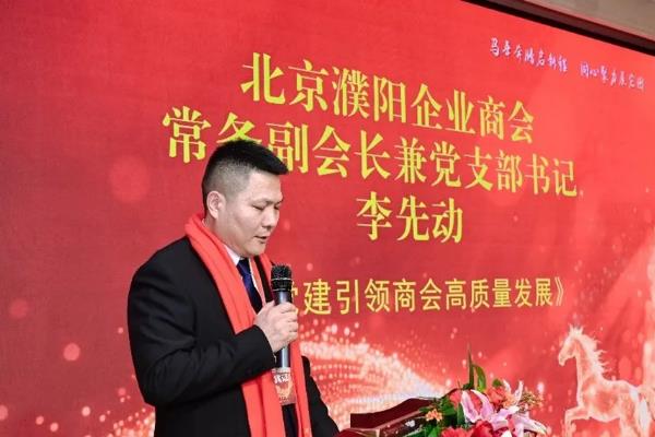 北京濮阳企业商会党支部书记李先动发表了《党建引领商会高质量发展》,首先感谢商会第一届陆民会长及党支部为商会党支部做出的成绩和贡献,感谢组织对我的信任与认可,我们在习近平同志为核心的党中央周围,促进民营企业发展一系列重要指示精神的大背景下,号召第二届商会全体党员发挥模范带头作用,紧密围绕“服务首都、服务家乡、凝聚乡贤、共同发展”的核心使命,依托“三会一课”、主题党日持续强化理想信念教育,听党话、跟党走,坚守初心使命将个人成长、企业发展融入商会发展大局,为濮写京濮量两地高质量发展新篇章贡献更大的力量。