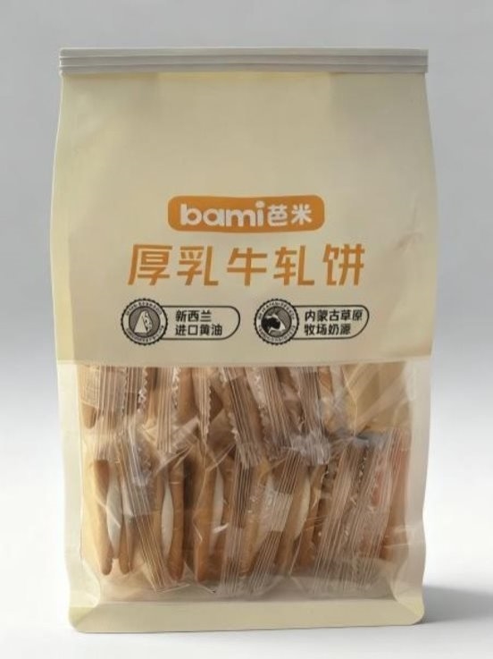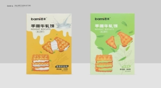 芭米旗下牛轧饼产品有软奶牛轧饼干、手撕牛轧饼夹心饼干等。其中,手撕牛轧饼夹心饼干采用全脂乳粉、纯正黄油等优质原料制成,口感松软适口,具有多层次风味。