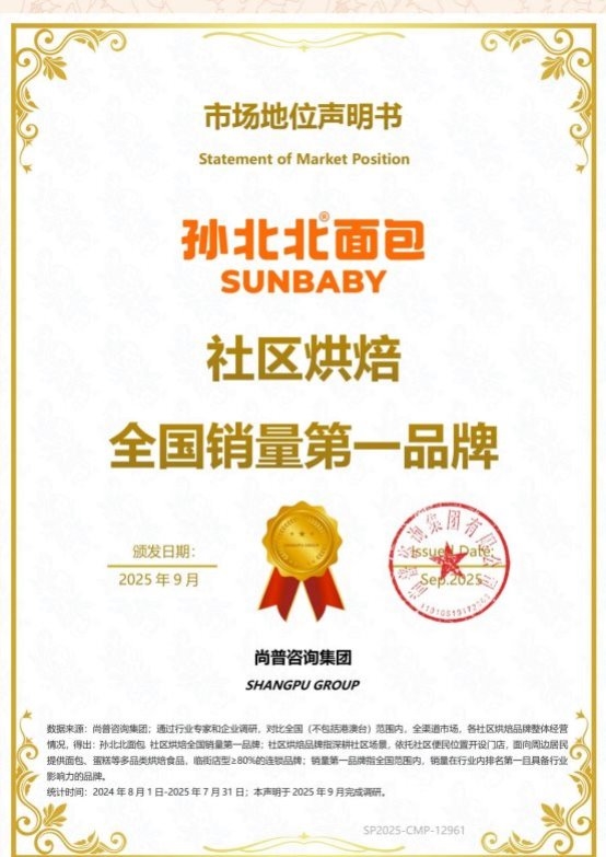 凭借扎实的产品、完善供应链及智慧化的运营体系,孙北北面包店发展至今已成为“社区烘焙全国销量第一品牌”。这一市场认可凸显了其在千亿烘焙市场的独特竞争优势与广阔发展前景,为潜在投资创业者提供了极具价值的市场样本。