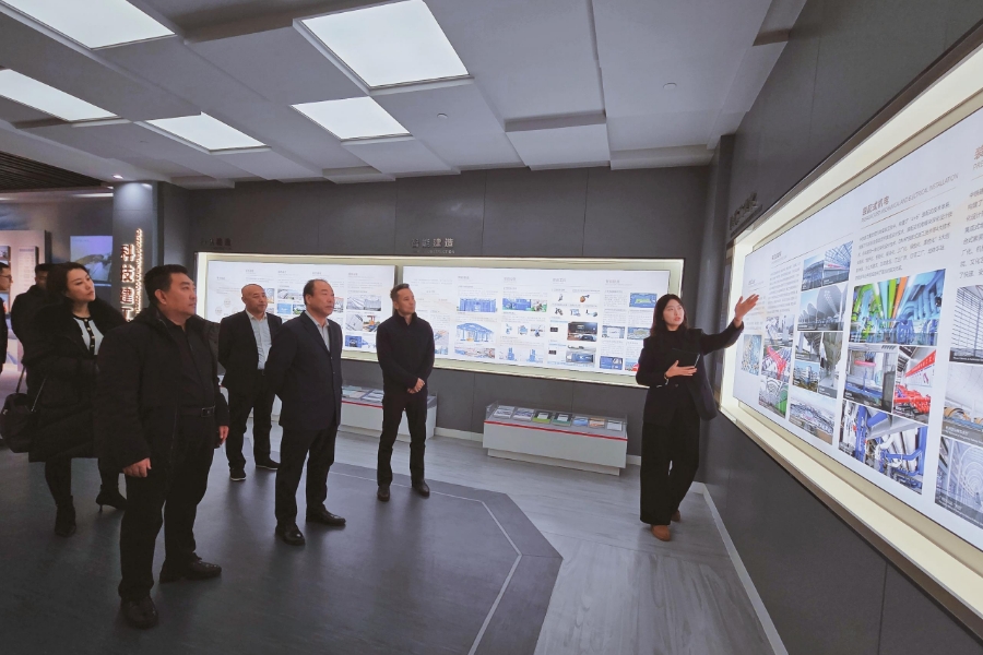 孙海山副理事长一行参观了中铁建工集团展览馆。中铁建工集团设计院党委书记郭永俊和集团相关部门领导陪同参观,分别向来访的