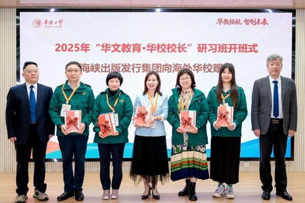 开班式上,海峡出版发行集团进行了特色项目推介,展示了新华·云书馆数智化阅读平台、“中文+特色课程”体系等华文教育创新成果,并举行赠书仪式,为海外华校送去教学资源。随后,全体参会人员参观了华侨大学校史馆、华校风采展及华文教育教学教辅产品展。