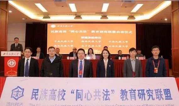 开幕式上举行了民族高校“同心共法”教育研究联盟启动仪式,联盟发起单位包括中央民族大学、西南民族大学、中南民族大学、西北民族大学、北方民族大学、大连民族大学。